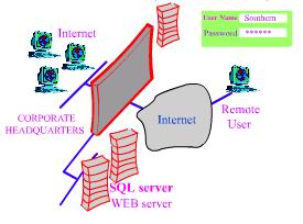 ผู้ใช้จากภายนอก ซึ่งอาจเป็นบุคคลอื่นนอกองค์กรของคุณที่ได้รับอนุญาต เช่น พันธมิตรทางธุรกิจ หรืออาจเป็นเจ้าหน้าที่ขององค์กรของคุณที่ทำงานจาก ระยะไกล (Telecommuters) สามารถเชื่อมต่อจากภายนอกเพื่อเข้ามาใช้งานข้อมูลเฉพาะอย่างบน เครือข่ายภายในได้ โดยผู้ใช้จากภายนอกจะต้องผ่านการตรวจสอบก่อน เช่น การให้ป้อน ชื่อผู้ใช้และรหัสผ่าน ดังในรูปที่ 2 หรืออาจใช้วิธีตรวจสอบที่รัดกุมยิ่งขึ้น เช่น การใช้บัตรแถบ แม่เหล็กหรือสมาร์ทการ์ดและรหัสผ่าน การตรวจสอบลายนิ้วมือ ลายมือ หรือ ลายม่านตา เป็นต้น โดยไฟร์วอลล์จะส่งต่อการตรวจสอบไปยังเซิร์ฟเวอร์ตรวจสอบผู้ใช้ (Authentication Server) หากผ่านการตรวจสอบจึงจะเปิดทางให้ผู้ใช้คนนั้นเข้าถึงข้อมูลได้